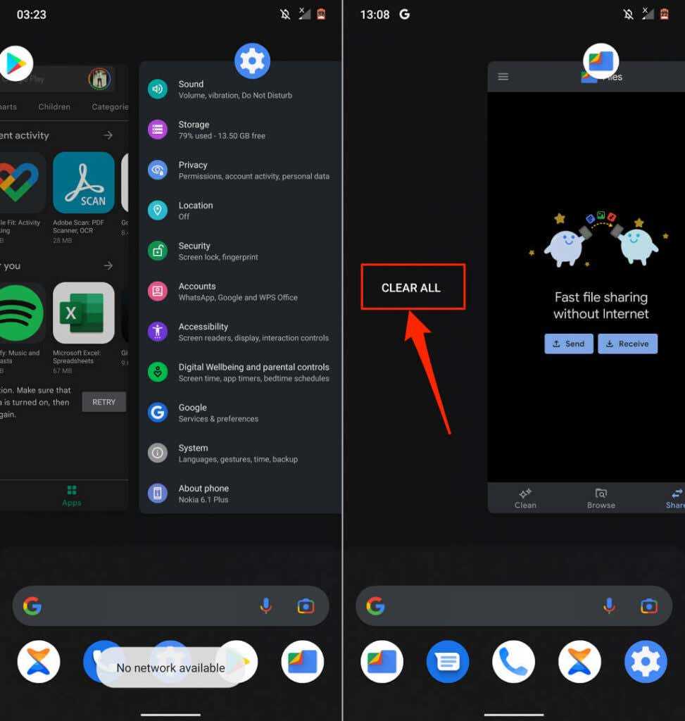 Ошибки программного обеспечения на уровне операционной системы (ОС) также могут нарушить работу встроенных и сторонних приложений в Android. Подключите телефон к сети Wi-Fi и выполните следующие действия.