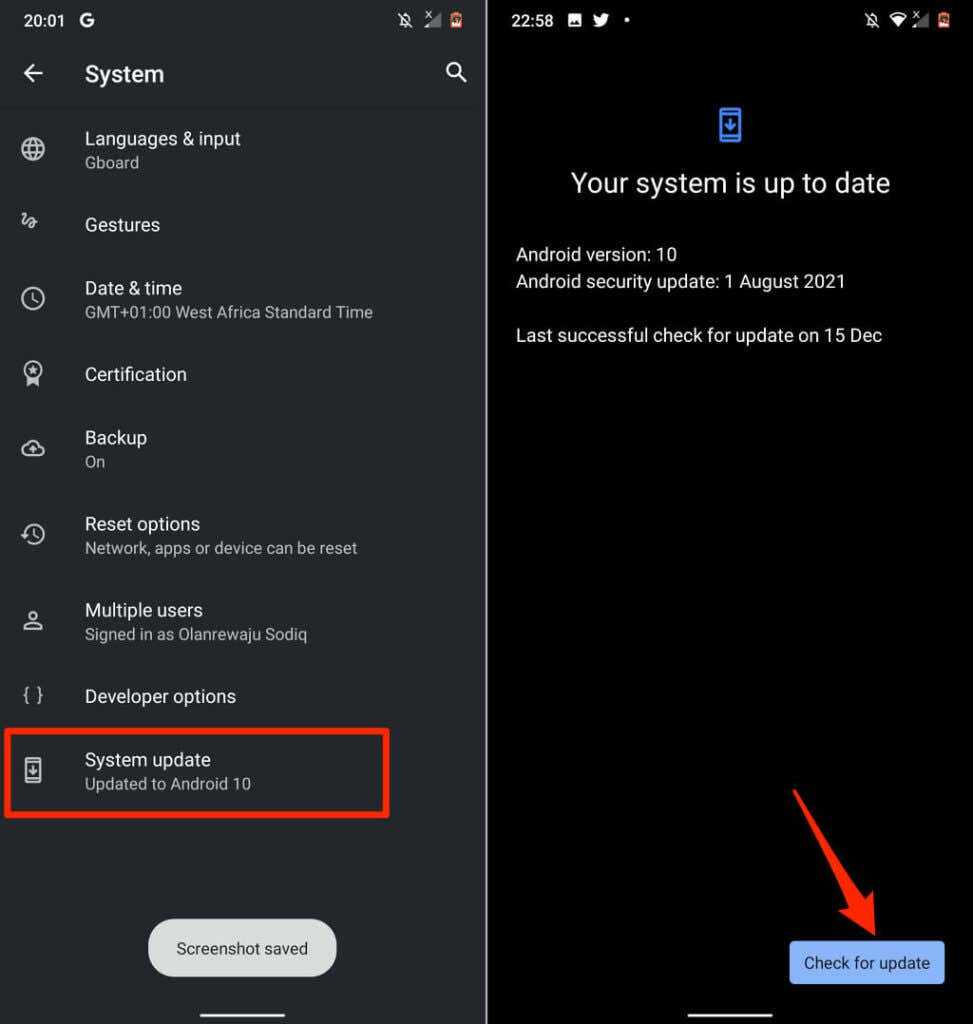 Откройте «Настройки», выберите «Система»> «Дополнительно»> «Обновление системы» и нажмите «Проверить наличие обновлений», чтобы установить последнюю версию ОС Android.