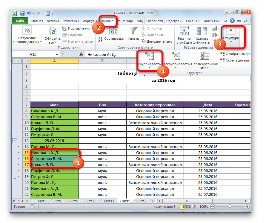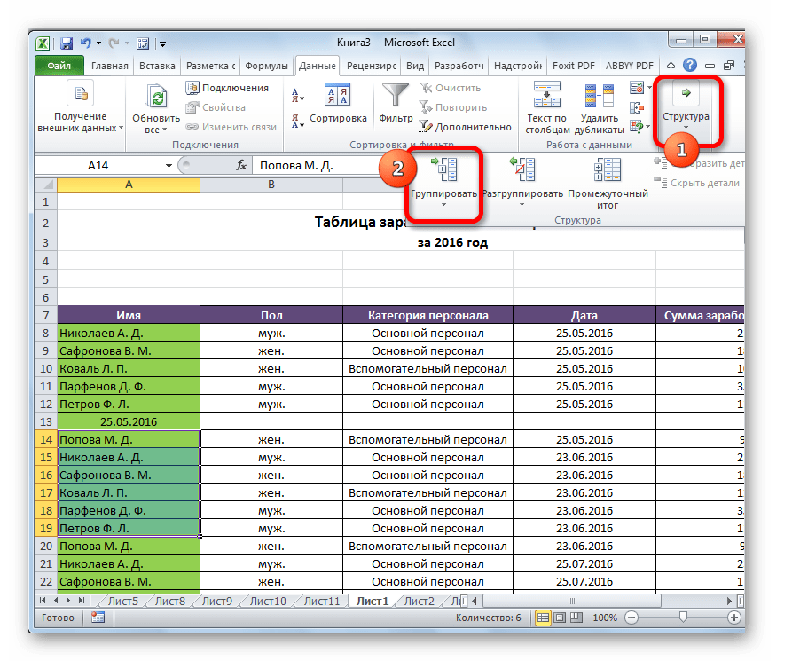 Группируем строки в Excel