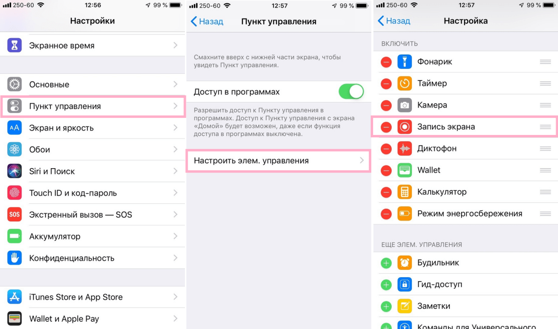 Шаг 1: Добавьте «Запись экрана» в центр управления. Для этого перейдите в «Настройки»> «Пункт управления»> «Настроить элементы управления», затем нажмите кнопку «+» рядом с «Запись экрана».