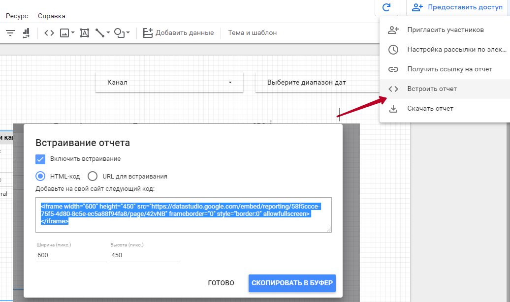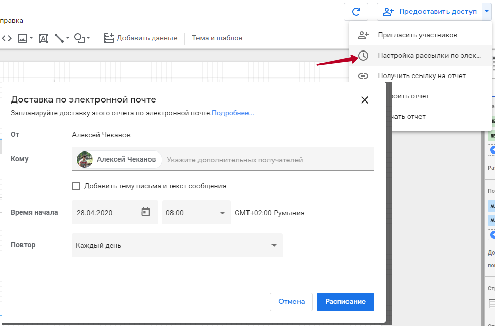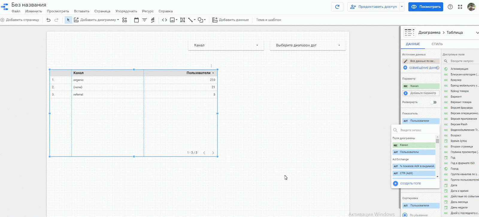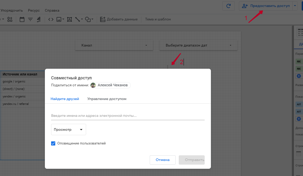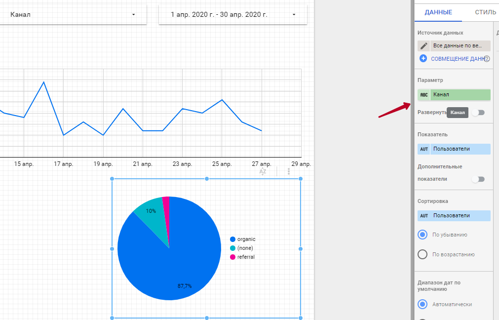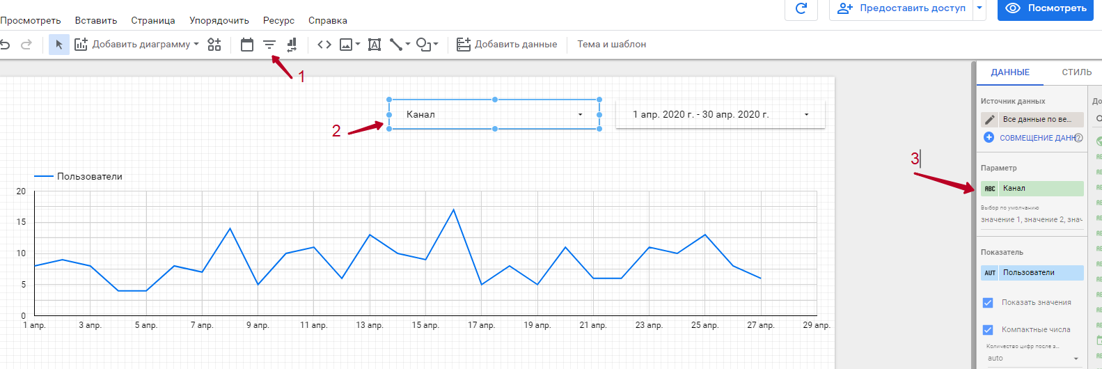 - источник данных (Google Analytics, Google Таблица и т. д.);