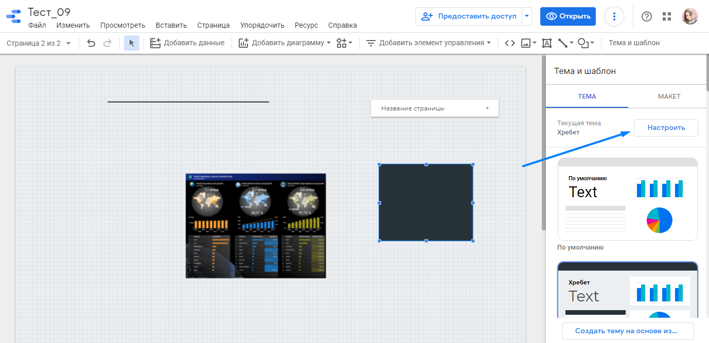 Чтобы перейти к настройке, кликните «Тема и шаблон» на панели инструментов.