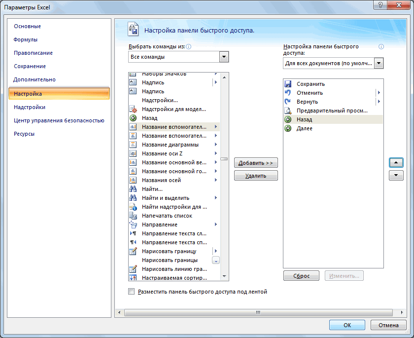 Добавляем кнопки навигации в панель быстрого доступа