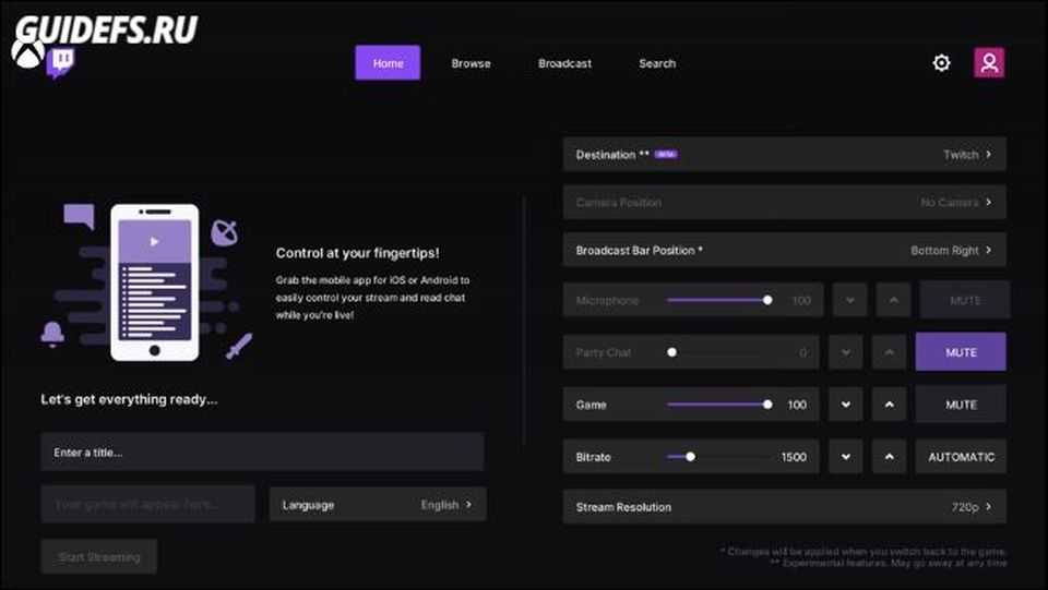 Чтобы остановить стрим или изменить настройки стриминга, заново запустите приложение Twitch (вы можете сделать это через руководство. Просто нажмите кнопку Xbox на контроллере). Любые изменения, которые вы внесете в свой поток, начнут действовать, как только вы перезапустите игру, в которую играете.