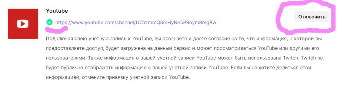Приступаем, первым делом создаем аккаунты на ютубе и твиче (подтверждаем их) надеюсь вы знаете как это делать? Нам нужно связать наш аккаунт ютуб с аккаунтом на твиче,именно на привязанный аккаунт и будет идти наш стрим. Привязка происходит в настройках→ подключение Привязка завершена