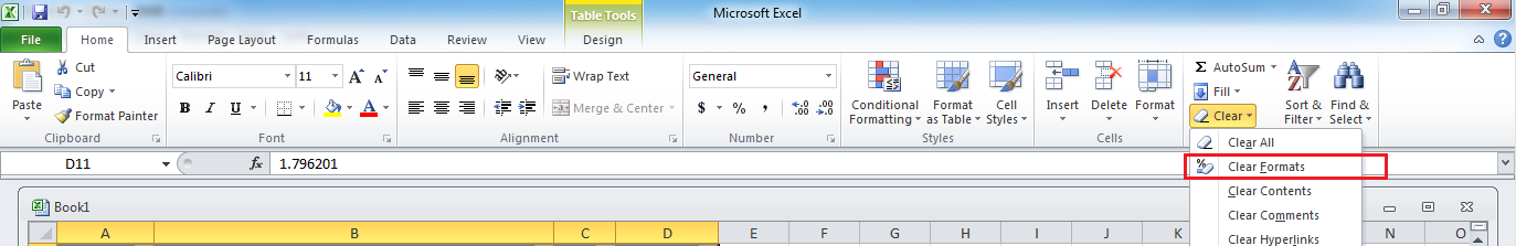 Это приведет к удалению таблицы Excel, а также к удалению любого имеющегося в ней форматирования (кроме форматирования, которое вы применили вручную).