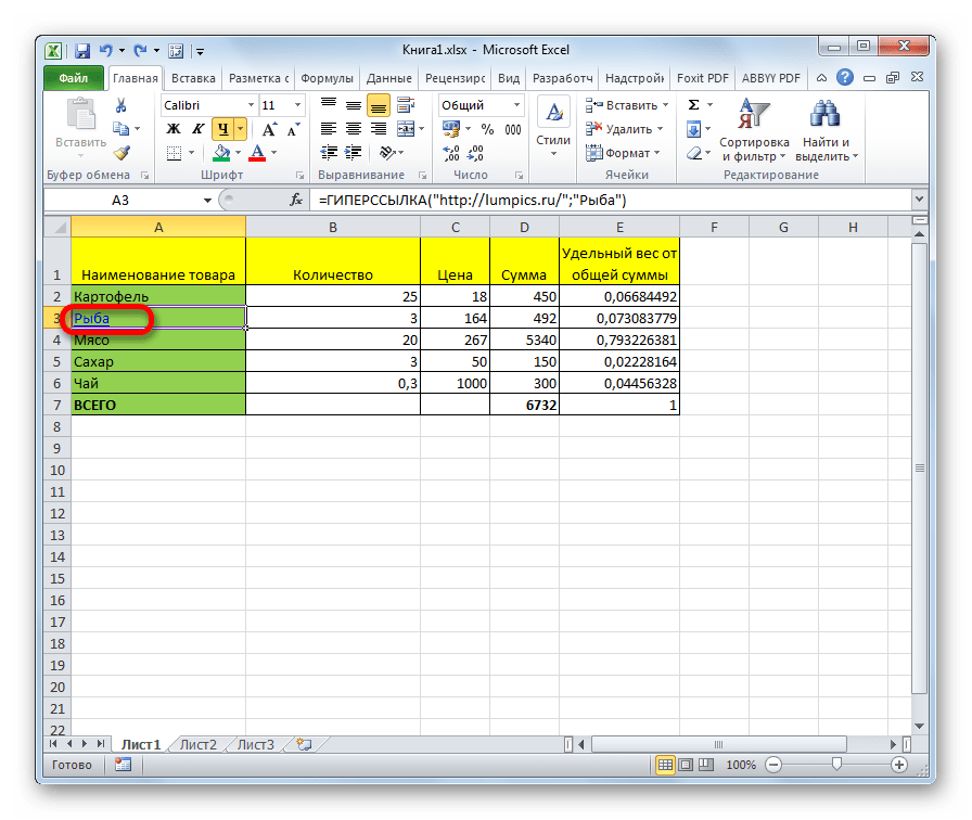Способ 2: удаление функции ГИПЕРССЫЛКА