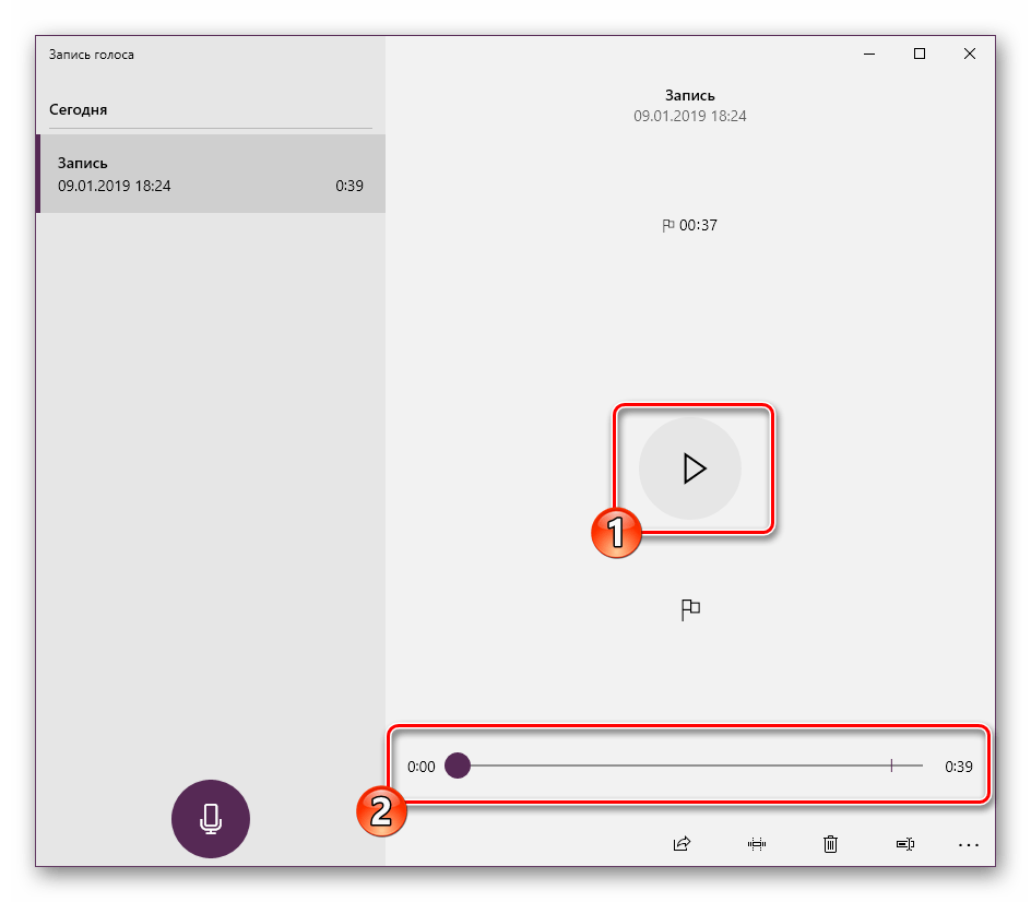 - Прослушайте записанный отрезок для проверки качества работы микрофона.