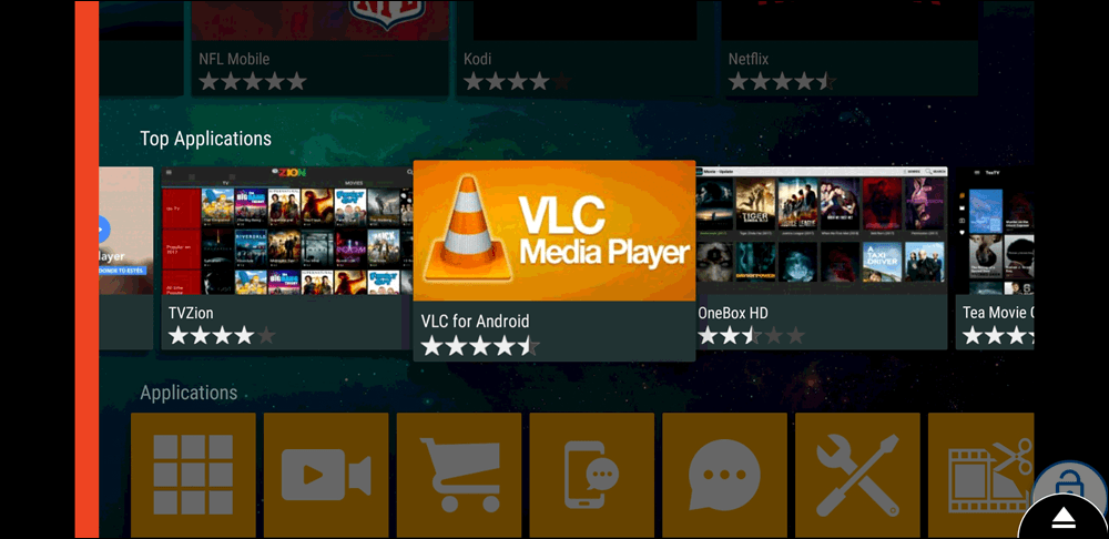 Если обратили внимание, то в Андроид ТВ есть еще одно меню — боковое. На нем отображаются различные установленные приложения, которым соответствуют ряды картинок с афишами фильмов в основном экране программы для быстрого доступа