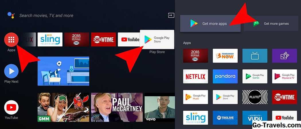 Замечания: Некоторые Android-телевизоры также включают Chromecast Built-in, который предоставляет второй вариант доступа и добавления потоковых приложений.
