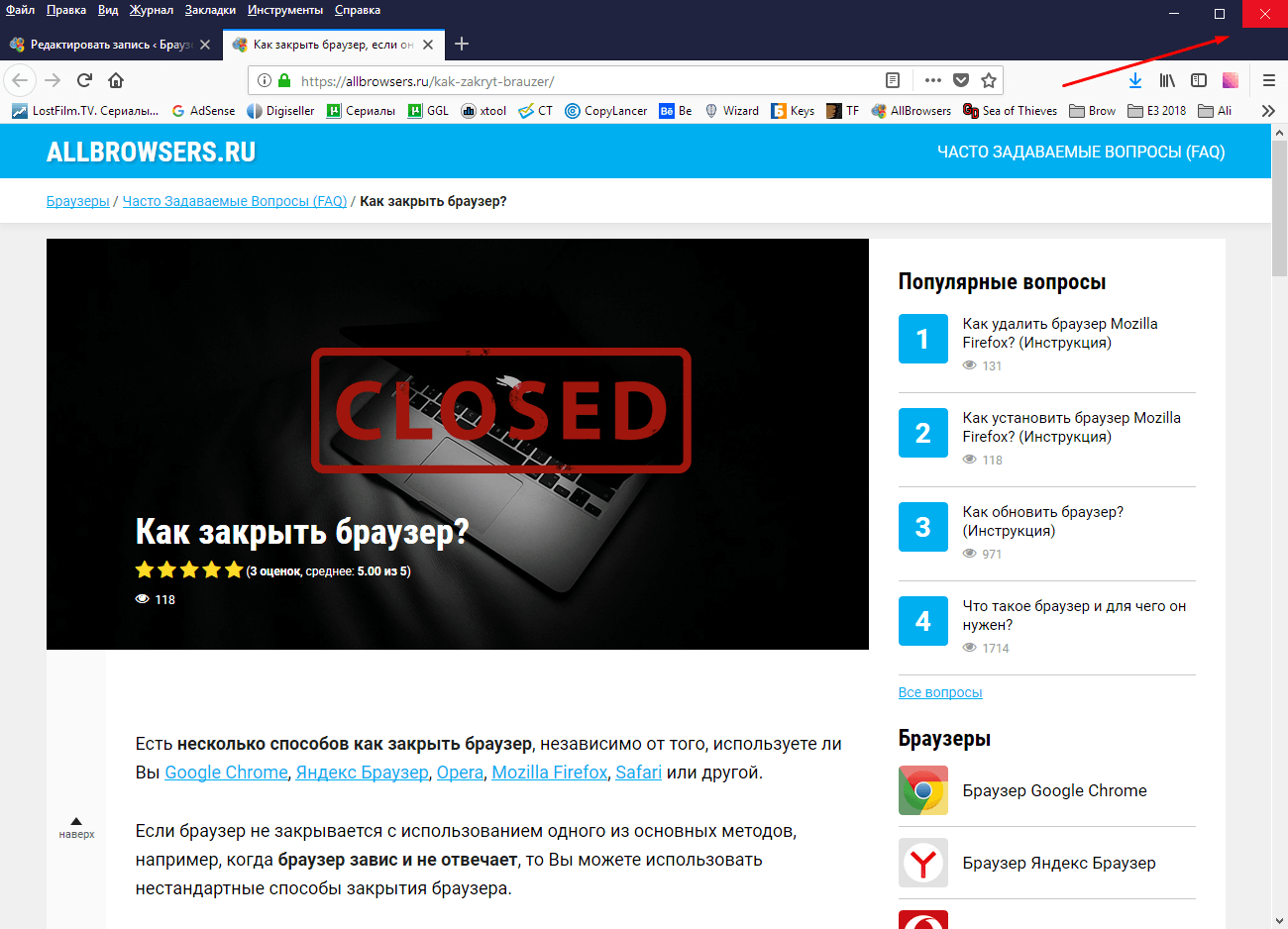 Конечно же, самым простым и очевидным методом выключения браузера, как и любой другой программы — это закрытие окна браузера. Для этого понадобится:
