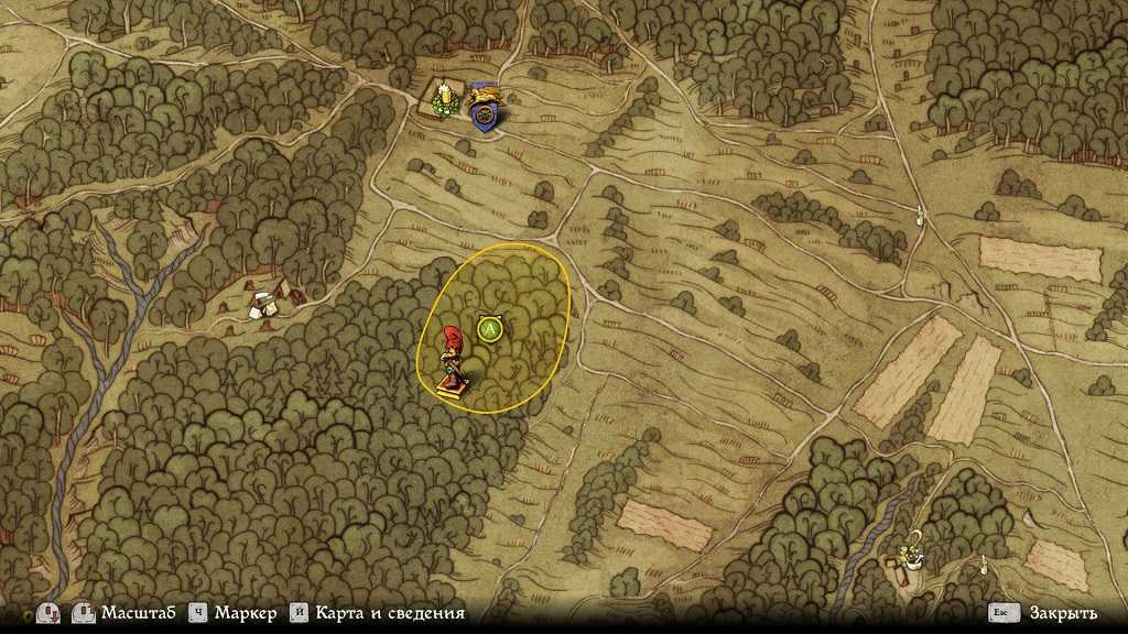 Подходящая цель для этого уже есть. В отмеченном на карте месте нужно раскопать могилу. Расположена она на холме под одной из сосен. Когда яма будет выкопана, нужно забрать найденные в ней кости.