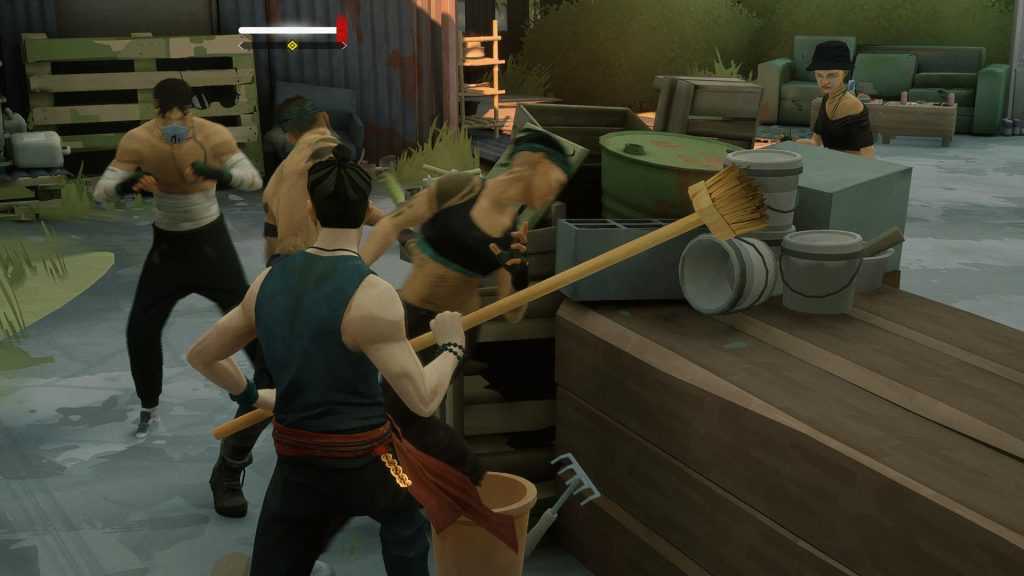 В SIFU есть лёгкие и тяжёлые удары, которые складываются в комбинации. Есть специальные приёмы вроде тычка в пах или подсечки, которые выполняются как в какой-нибудь Mortal Kombat — в стиле «вверх вверх треугольник». Есть захваты и броски. Есть блоки и увороты, парирования (без них вообще не жить, а тайминги немилосердные) и уклонения на месте, особенно полезные против врагов с холодным оружием. Есть, собственно, это самое оружие — трубы, биты, палки, мечи, бутылки, кирпичи и вообще всё, что под руку подвернётся. У оружия свои сеты атак и особенности, а ещё им можно швыряться.