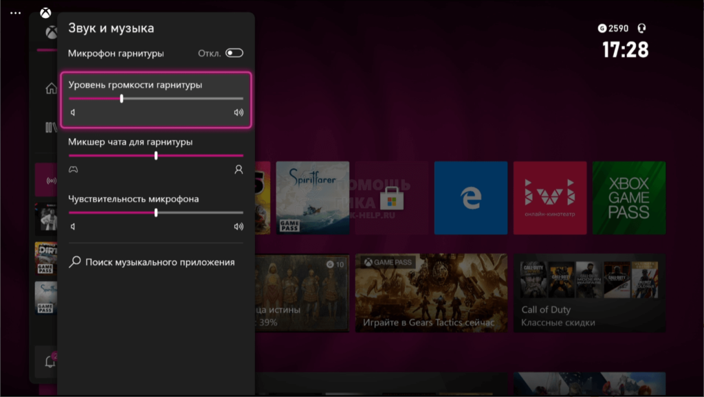 Для регулировку звука в наушниках, подключенных к Xbox, используется интерфейс приставки. В любой момент, в том числе в играх, достаточно нажать на белый значок Xbox на геймпаде.