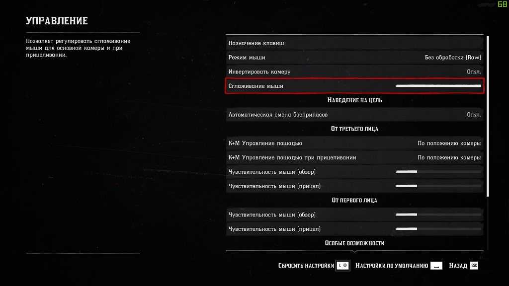 Помимо проблем с графикой, некоторые игроки сталкивались с плохой работой мыши и её поведения при прицеливании. Курсор дёргался, а если медленно вести мышку — вообще не реагировал. В этом вам поможет выкрутить значение «Сглаживание мыши» на максимум во вкладке «Управление». Сглаживание работает намного лучше, чем во всех других играх, задержки не чувствуется, а играть намного приятнее.