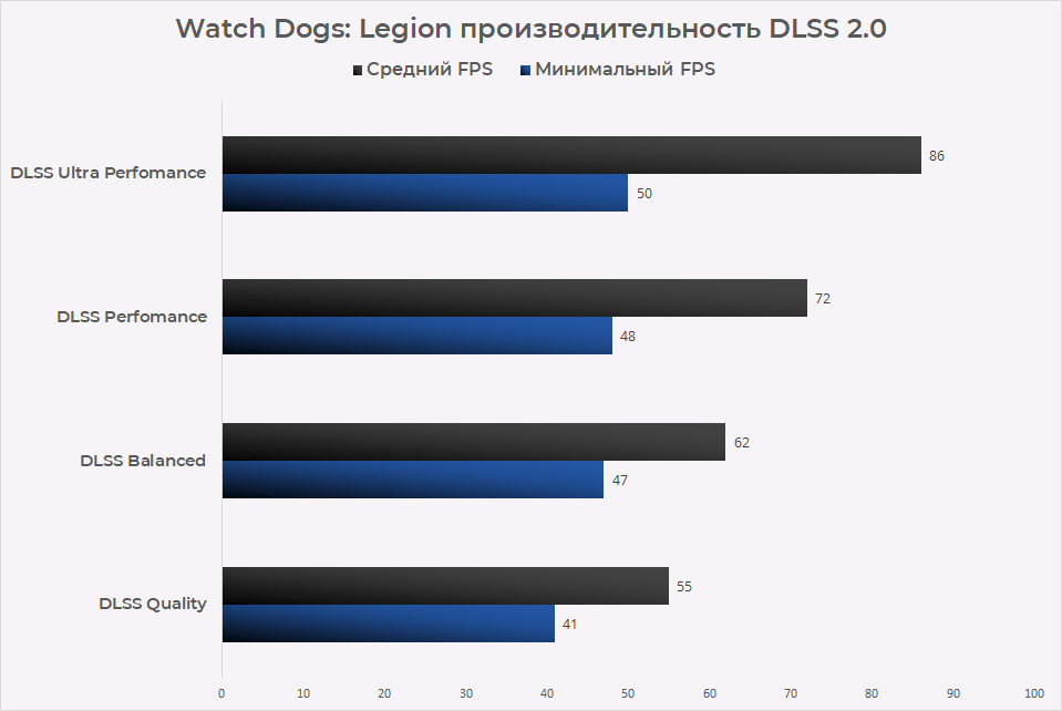 DLSS 2.0 была протестирована в игре Watch Dogs: Legion. Традиционное масштабирование разрешения работает неидеально и влияет на качество изображения, поскольку обрабатывается меньше пикселей. Особенно это заметно, когда отображается изображение на большом расстоянии и высокочастотная детализация. Увеличение резкости может помочь, но это не панацея.