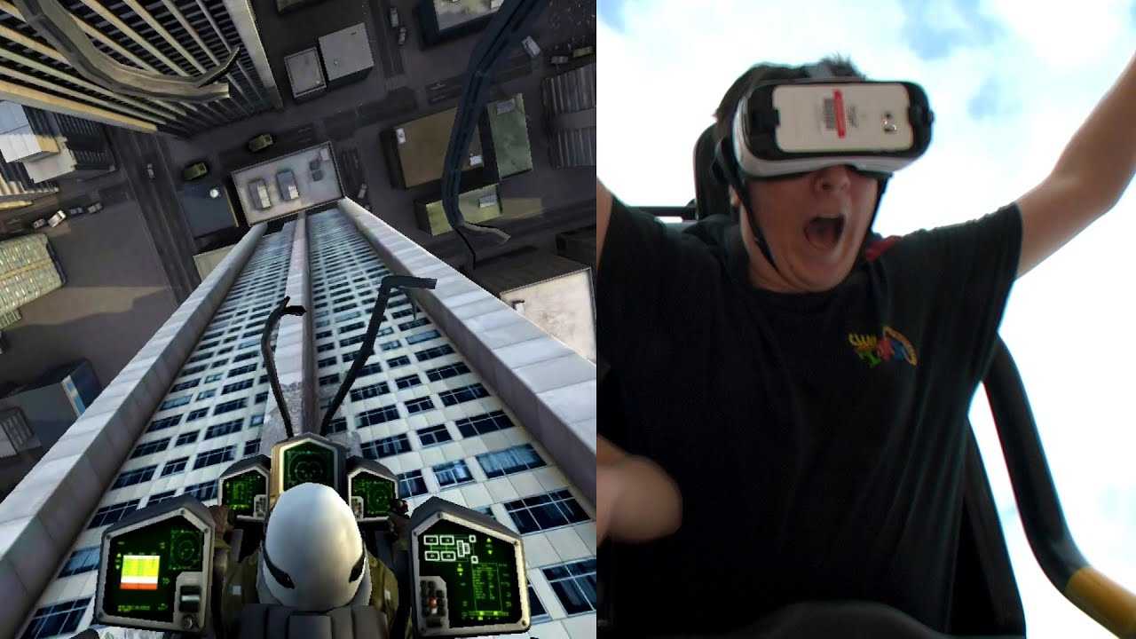 В конце 2015 года несколько канадских тематических парков развлечений начали экспериментировать с VR-дополненными поездками на аттракционах. Для этого они использовали поддерживающие смартфоны устройства, на которых выводилась картинка, синхронизированная с различными реальными поворотами, подъемами и спусками на американских горках. К марту 2016 года американская сеть тематических парков Six Flags решали полностью погрузиться в виртуальную реальность.