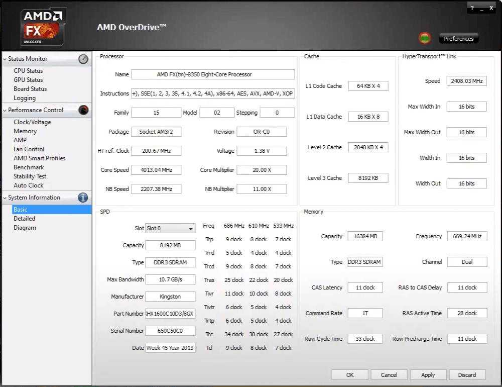 При запуске АМД ОверДрайв на экране появляется следующее меню.