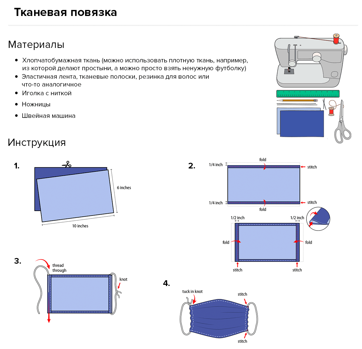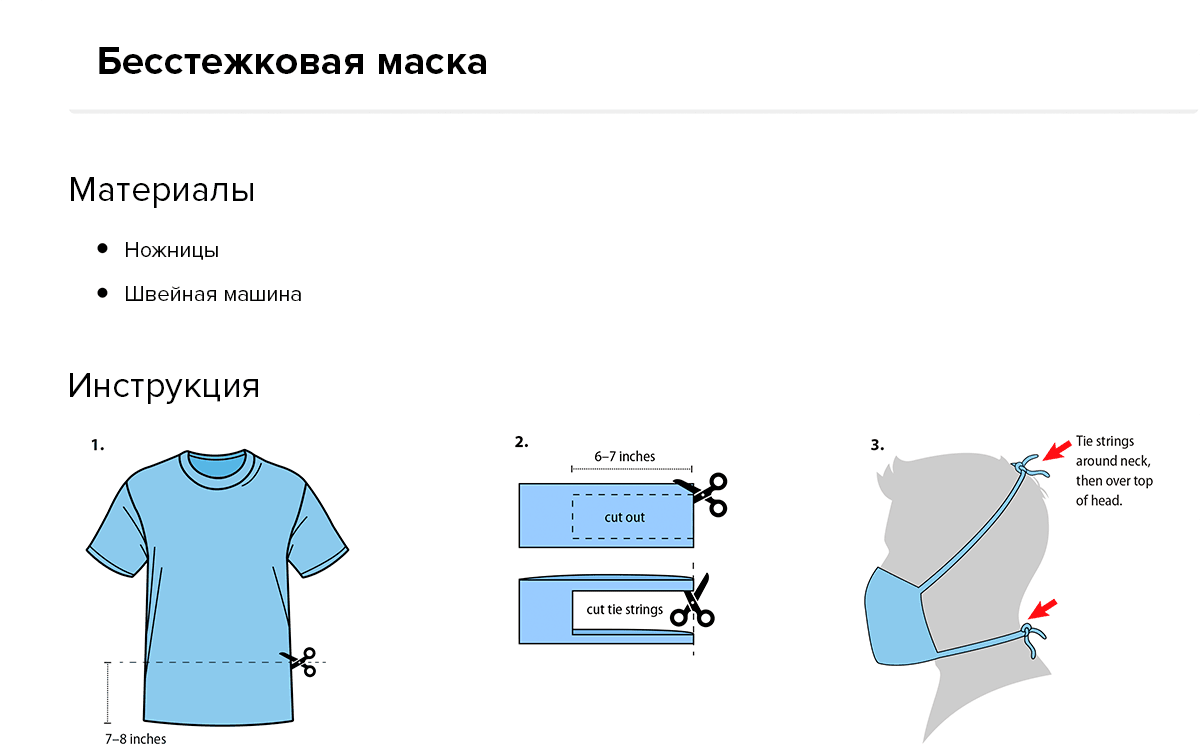 Рисунок 1а. Как сшить тканевую повязку на лицо. Инструкция: