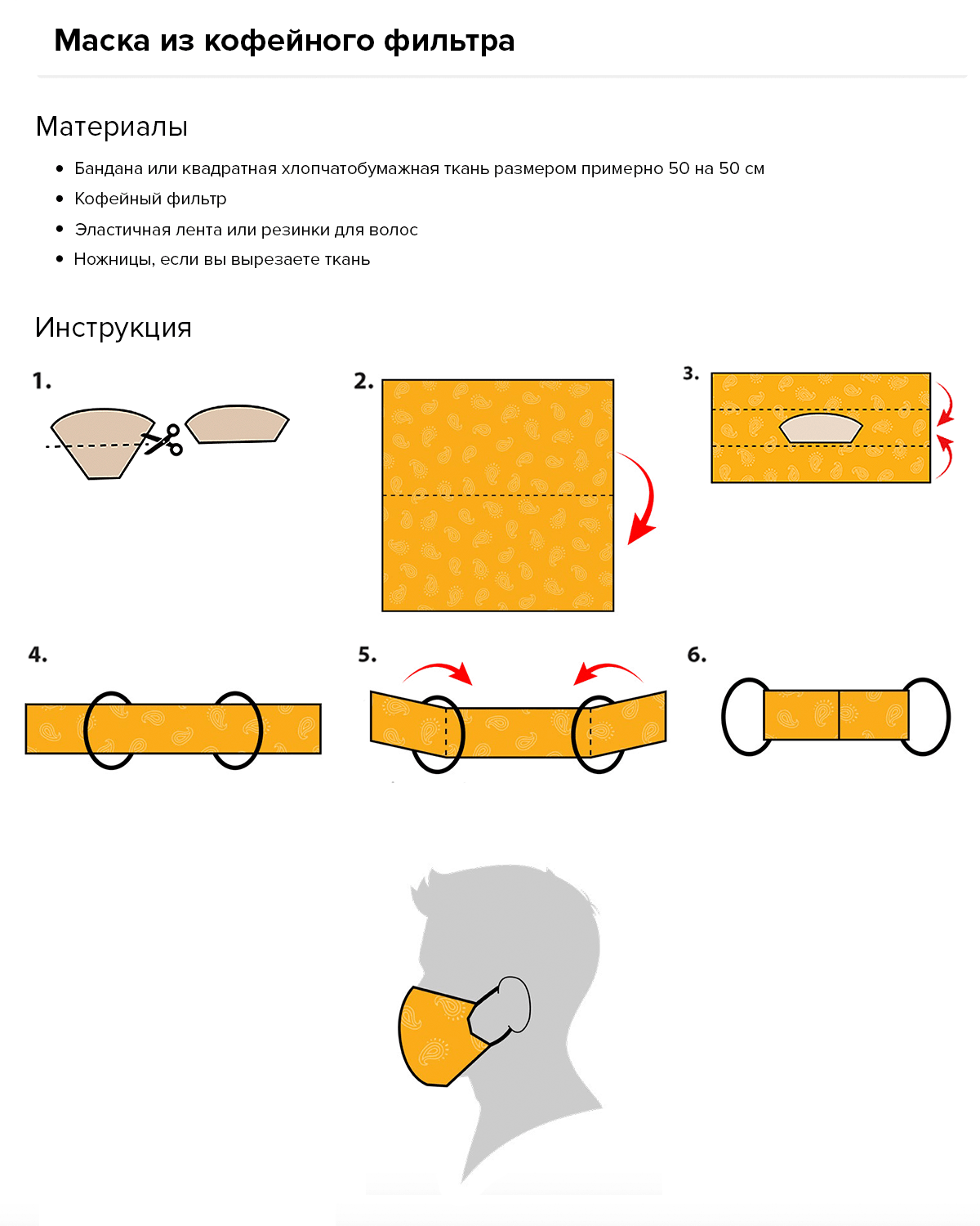 - Сложите бандану или кусок ткани
