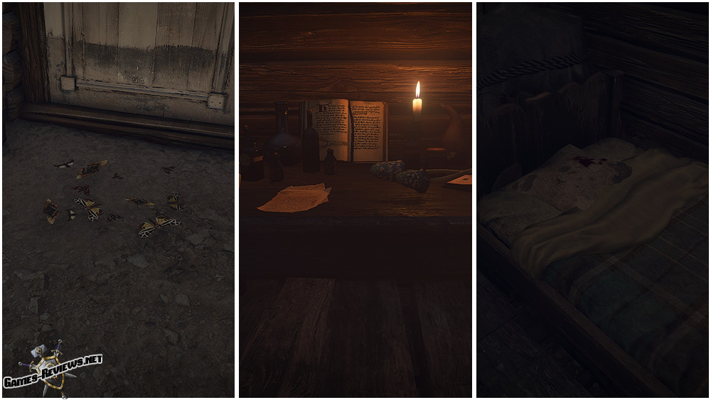 Начнём с самого важного. На подушке отшельницы ведьмак увидит засохшую кровь