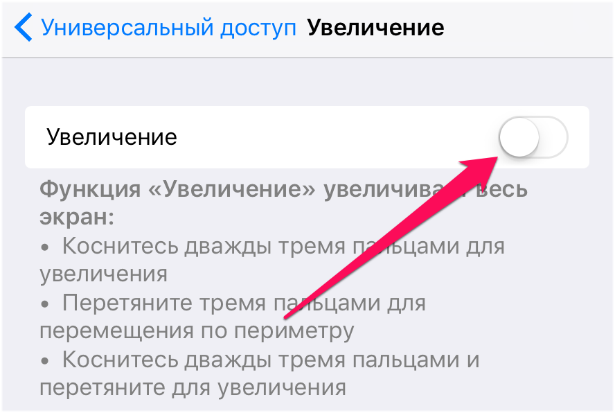 Шаг 6. Перейдите в меню «Настройки» → «Основные» → «Универсальный доступ» → «Сочетание клавиш» и поставьте флажок на пункте «Увеличение».