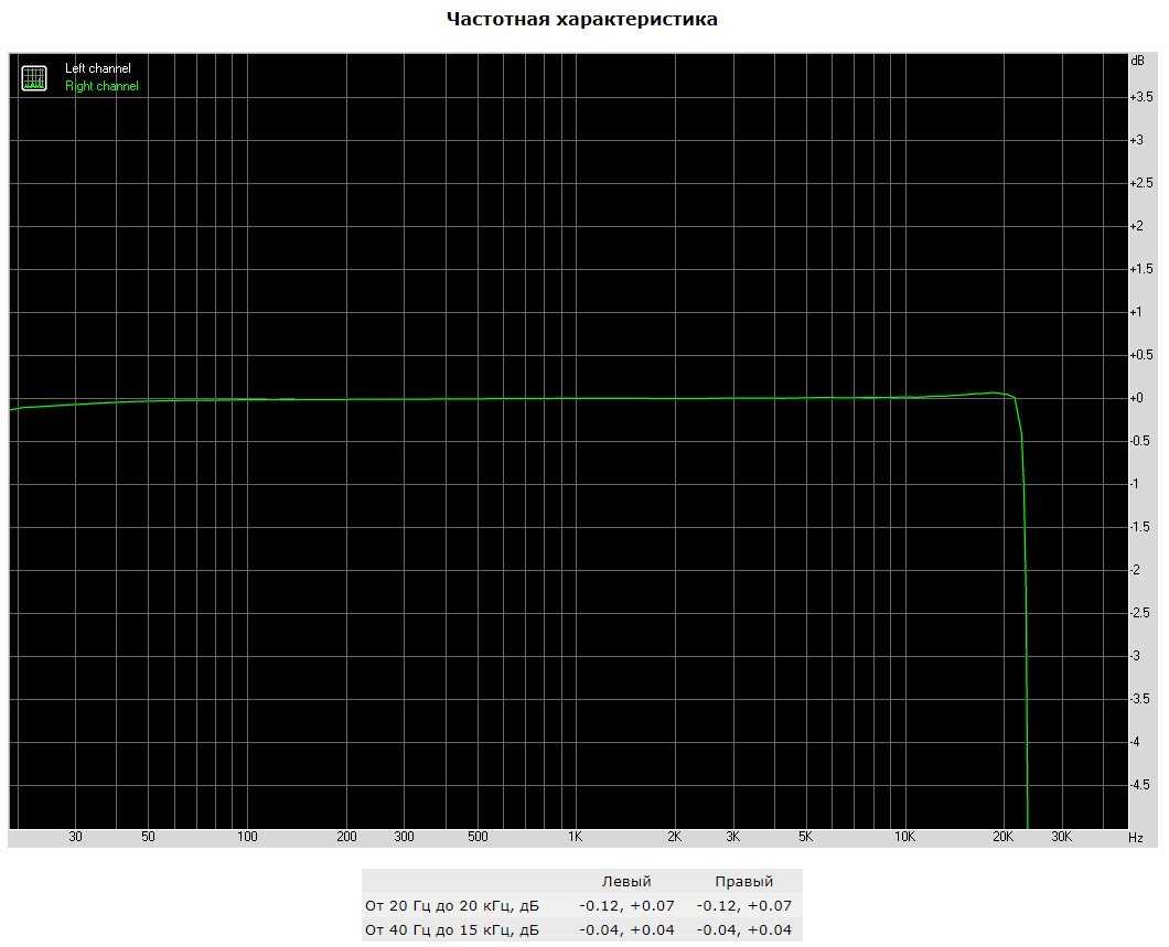 АЧХ равномерный, на высоких частотах спад после 20 кГц. На низких частотах спад не более 0,1 дБ до 30 Гц. На слух провалы менее 0,5 дБ будут просто незаметны.