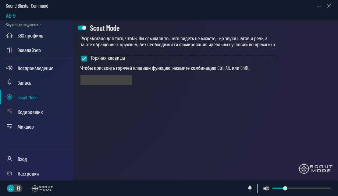 Ну и на «закуску» стоит упомянуть о режиме «Scout Mode». Это уже не новость и давняя особенность плат от Creative. «Scout Mode» — это технология, которая усиливает такие звуковые игровые сигналы как шаги и звуки переключения оружия. С их помощью пользователь можете с легкостью определять местоположение ваших врагов и предсказать их действия, прежде чем будет замечен сам. Если это так можно назвать — узаконенный чит в действии.